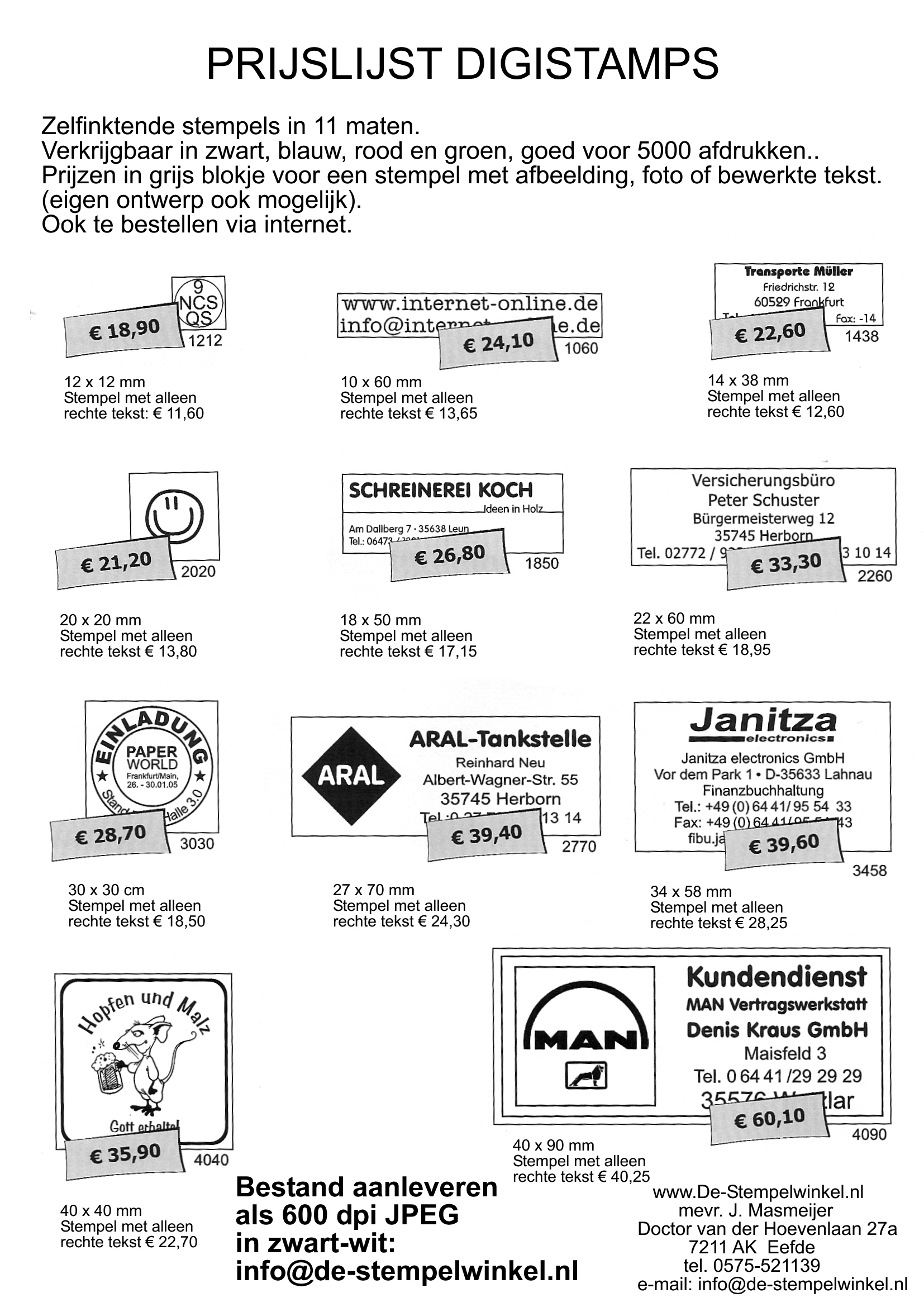 Voor stempels met alleen tekst gelden de lage prijzen op het overzicht.